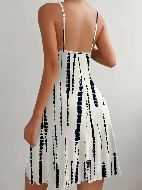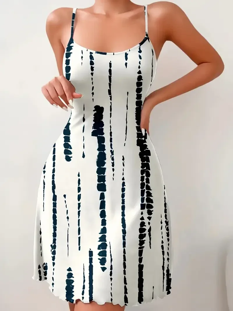 Robe brettelle imprimé noir et blanc pour femmes - Sans manches, en polyester tricoté, parfaite pour toutes saisons, maison et tenue décontractée. 94%polyester,6%élastanne. ref:AW1127664